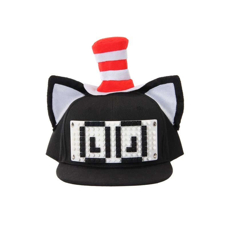 If you need a constructive way to show some love to the iconic Cat in the Hat of the Dr. Suess books, check out this Dr. Seuss Cat in the Hat Building Blocks Snapback Hat! The officially licensed hat kit features a plastic size-adjustment band at the back of the snapback. You can use the 6"W x 2.5"H brick base panel on the front of the hat with any building blocks to create any design your heart desires. Be creative and let your imagination run wild! - Hat - 221 Blocks - 6 Stickers