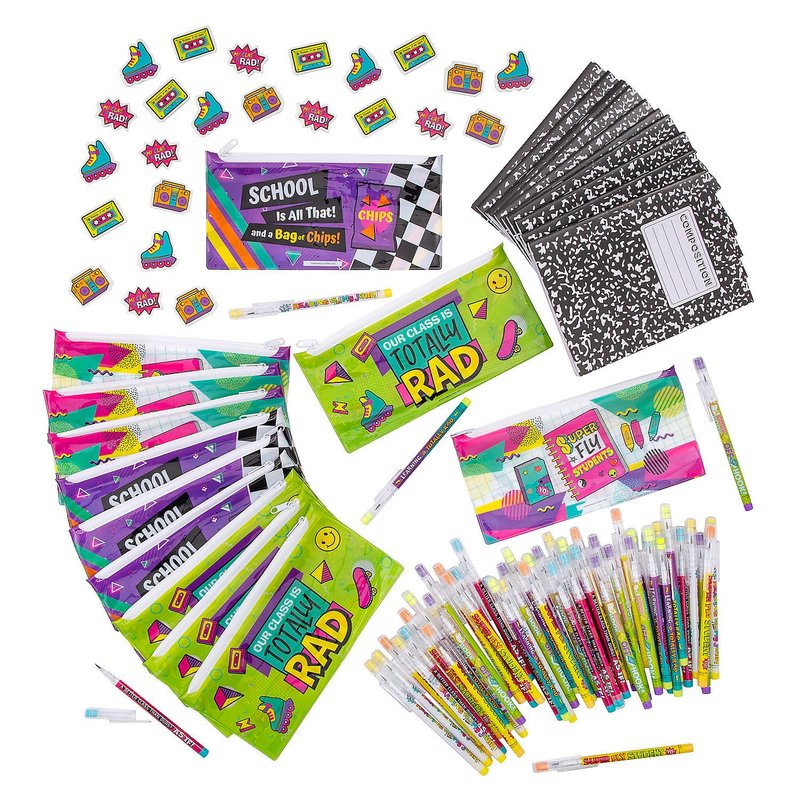 Get ready to bring the fun of the 90s to the present day with this stationery kit! Packed with writing essentials all themed after the iconic time period, this convenient bundle is a great way to stock up handouts and prizes for birthday parties, classroom events and more.