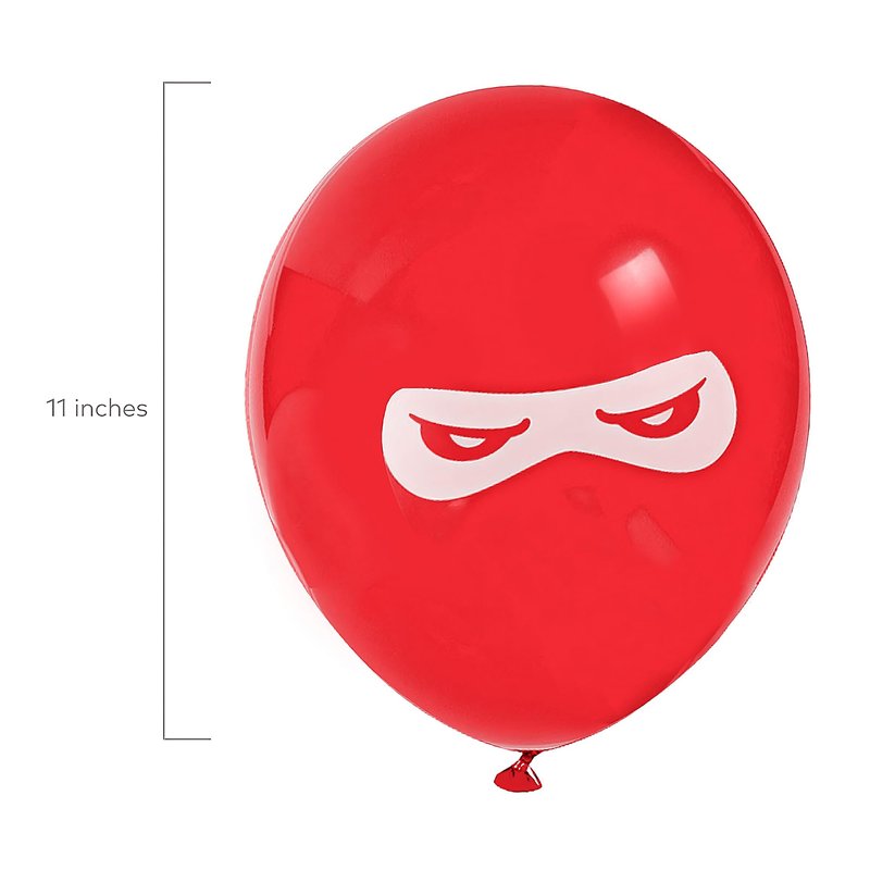 Features. Liven up your martial arts-themed birthday bash with Ninja Warriors Latex Balloons. Included in the set are balloons in red or black each featuring a drawing of a white ninja mask and a white balloon with a line drawing of a mask in black.. Size - 11 in. 24 Pack
