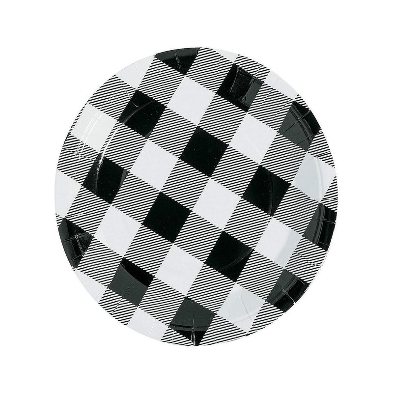 Fun Express BLACK & WHITE BUFFALO PLAID DINNER PLATE - Party Supplies - 8 Pieces