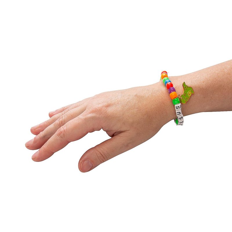 - Youngsters will have a blast assembling these bead bracelets during a Dinosaur VBS week or themed church event. Material: Includes plastic alphabet block beads, enamel charms and stretchy cording. Size: 2 3/4" diam. Makes 12. All craft kit pieces are pre-packaged for individual use. Kits include instructions.