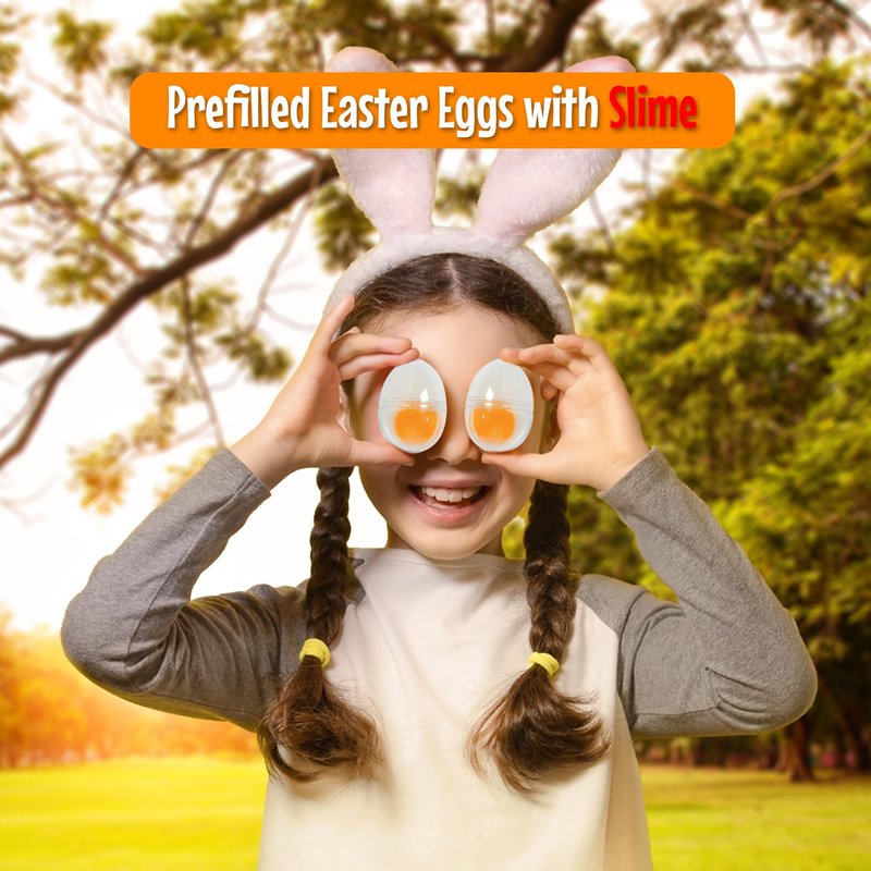 Fun Express Easter Eggs with Slime - Set of 12 Egg Yolk Slime for Prank Lovers, 2 1/2", Unforgettable Easter Fun - Realistic Egg Prank, Non-Edible Easter Toy with Slime-Filled Easter Eggs