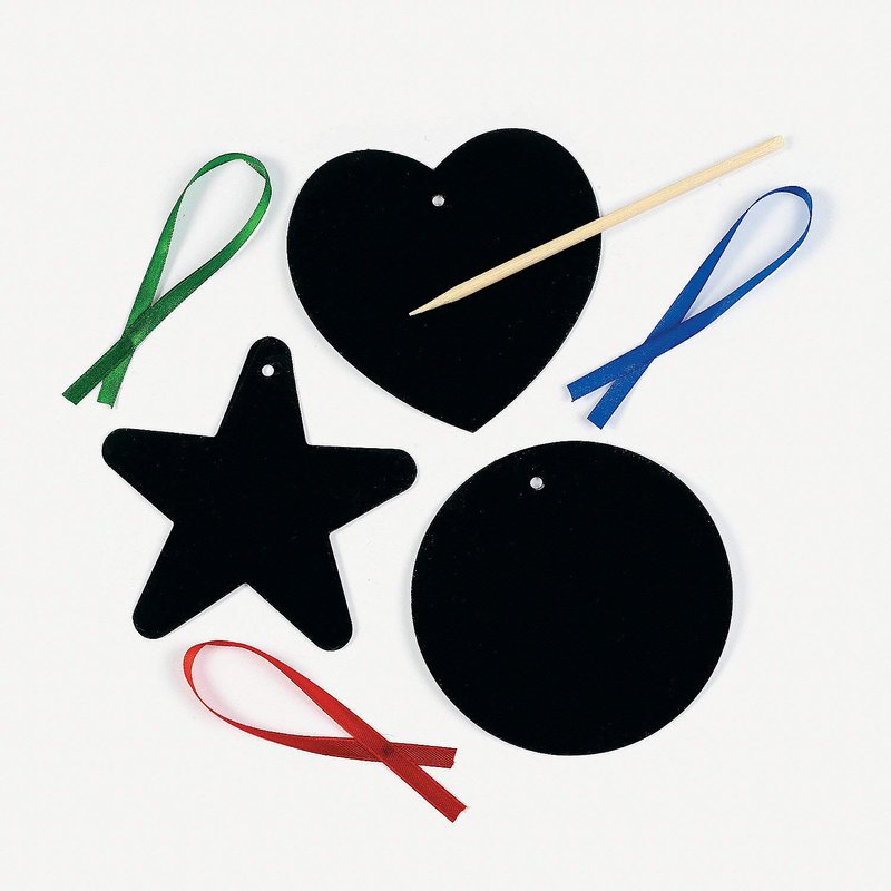 - The rainbow of colors magically appears when you scratch. In festive star, circle and heart shapes, these ornaments will add some homemade holiday cheer.