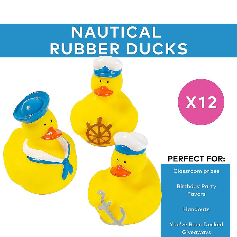 Get ready to cast off into fun! These Nautical Rubber Duckies are perfect decorations for a bon voyage party or anything with a nautical theme. Add these exclusively designed duckies to your collection or give them away as party favors..Vinyl. 2" Duckies do not float upright.