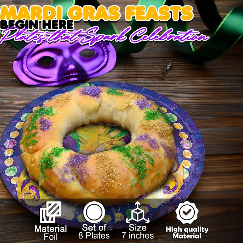 - THEMED CELEBRATION READY: Add vibrancy to your event! These plates are perfect for themed gatherings such as Mardi Gras party offering a festive touch