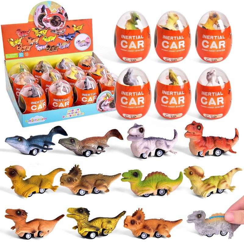 Item Name: 4" Dinosaur Pull Back Cars Toys for Toddler Boys Girls Gift Item Quantity: 12 packs Item Application: Dinosaur Car Toys with Eggs