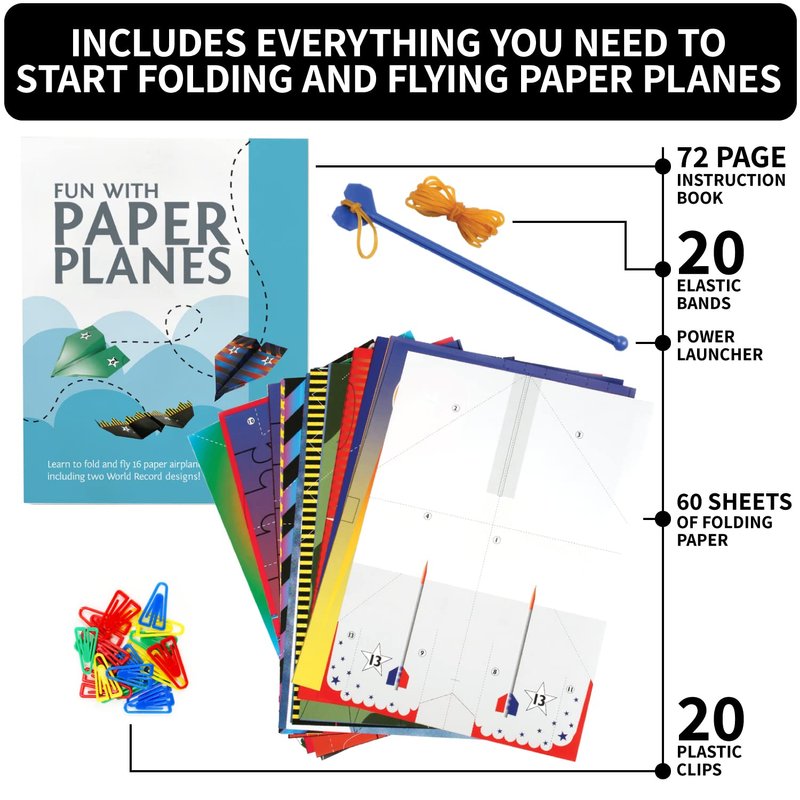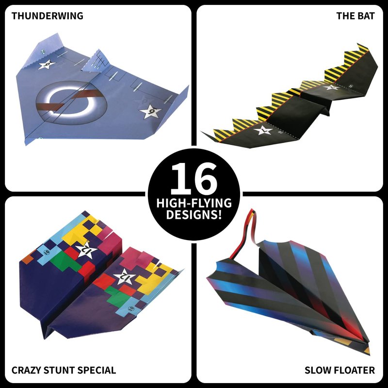 - FOLD & FLY WITH 16 HIGH-FLYING DESIGNS: A paper planes kit with instructions from Guinness World Record holders, you can learn to make 16 super fast flyers, and optimize them for speed and performance!