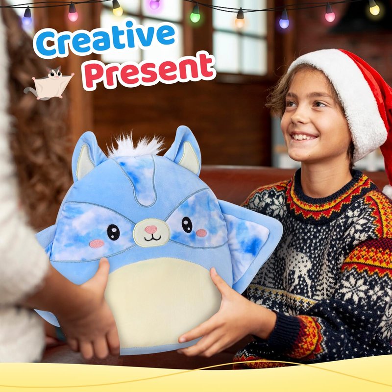 - Adorable Sugar Glider Design: This 12-inch plush pillow features a cute and whimsical sugar glider (flying squirrel) design, with big ears and a friendly face in calming shades of blue and white