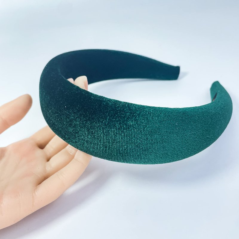 FunCosta velvet padded headband wide puffy headbands for women girls vintage sponge hair band trendy and cute hair accessories (Green)