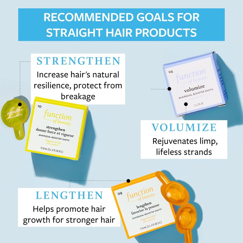 Function of Beauty Straight Hair Shampoo + Conditioner (11 oz Each) + Volumize, Strengthen & Lengthen #HairGoal Boosters Set - Sulfate-Free, Formulated to Hydrate and Seal in Moisture