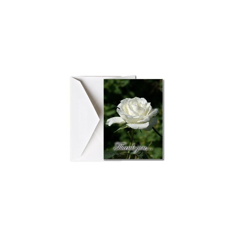 Funeral Memorial Service Thank You Cards with Envelopes (25 Count) FTKC1015 White Rose (Family Name Custom Printed - Enter Family Name)