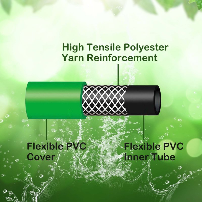 - 【Flexible and Durable】PVC outdoor garden hoses are flexible and durable to pass through the surrounding trees or shrubs easily.