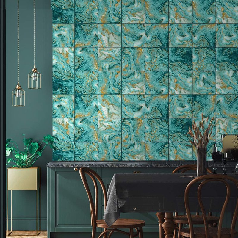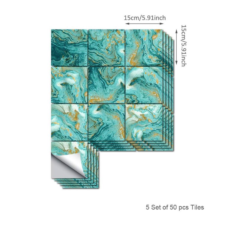 funlife 50Pcs Peel and Stick Kitchen Backsplash, Self-Adhesive Waterproof Tile Stickers, Retro Wall Decals for Home Bathroom Laundry Room Decor, 5.9"x5.9" Turquoise Marble