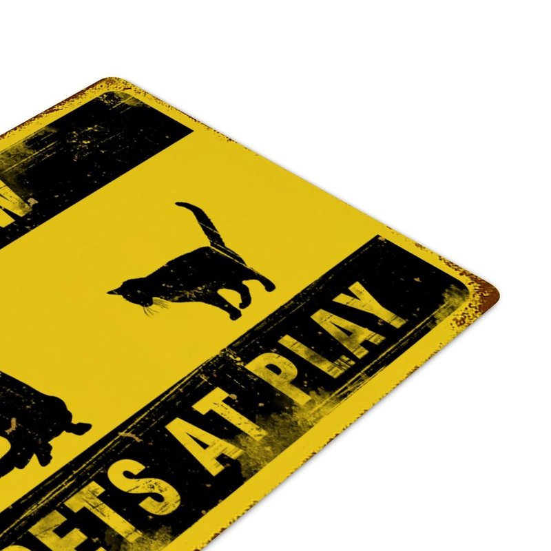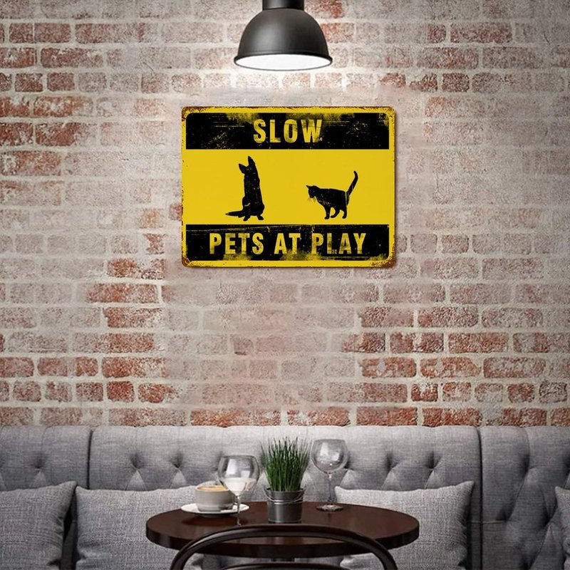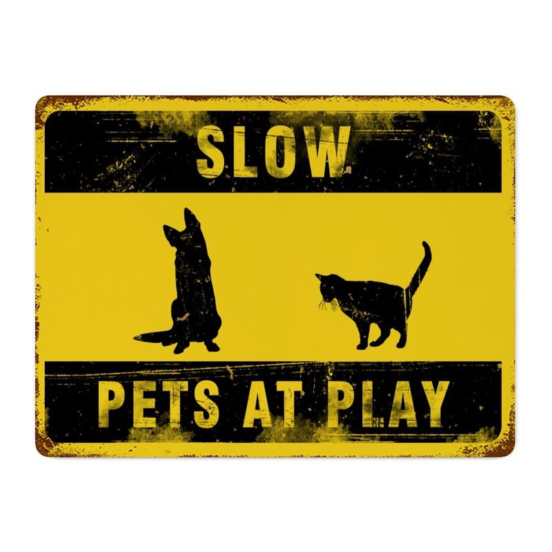Funlucy Warning Sign Slow Pets at Play Sign,Dog And Cat at Play Rustic Signs 12x16 Inch Waterproof Aluminum Tin Signs for Indoor & Outdoor Road Community Street Home Decoration