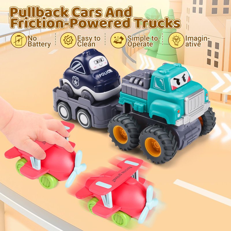 - Educational Benefits: Playing with our toy set offers numerous educational and developmental benefits. Children can enhance their fine motor skills by manipulating the vehicles, improve hand-eye coordination, and learn about cause and effect