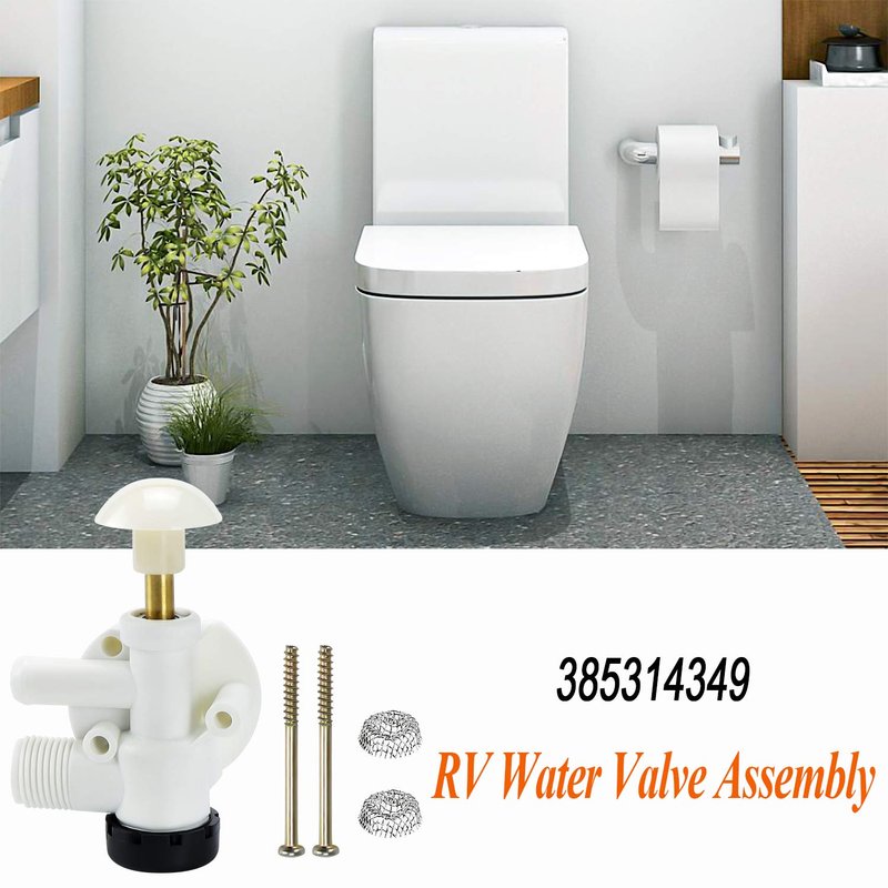 - πππ¦π¬ ππ‘π¦π§πππππ§ππ’π‘ - Our 385314349 RV toilet valve kit contains all necessary parts to get your valve working properly. Package includes 1 Γ RV toilet water valve, 2 Γ new mounting screws, 2 Γ stainless mesh filter. You can install the valve kit in place in a few easy steps (for installation steps, please refer to the following content in our product description), and solve the problem of constant water leakage and freeze in the toilet