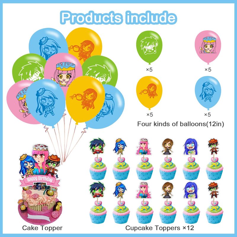 - ☆Funneh Krew Party Supplies: Game Birthday Party Decorations set with 1 piece of happy birthday banner,18 pieces of balloons (3 styles), 1 piece of happy birthday cake topper,12 pieces of cupcake toppers. Our full set of Funneh Krew theme birthday party supplies will add surprises to you, your family and friends.