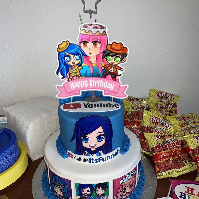 - ☆Unique Design: The cake topper is delicately crafted it will make your cake decor more creative, and perfect for birthday party, Funneh Krew theme birthday party, baby party, baby shower, garden parties, outdoor role play, school supplies, and a variety of party scenarios. Easy to assemble, no time consuming, enjoy the fun with your honey