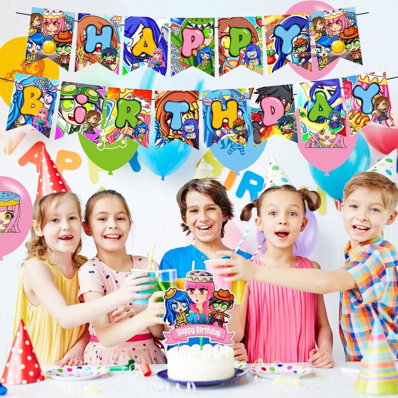 - ☆Wide Application: Funneh Krew Birthday Decorations Party Packs Is Created with The Mission To Leave Everyone with Beautiful Memories! birthday celebrate in style with a cartoon themed Party, this unique 4-in-1 decorations set will definitely light up your honey birthday party and make this an unforgettable moment for your sweet and their friends.