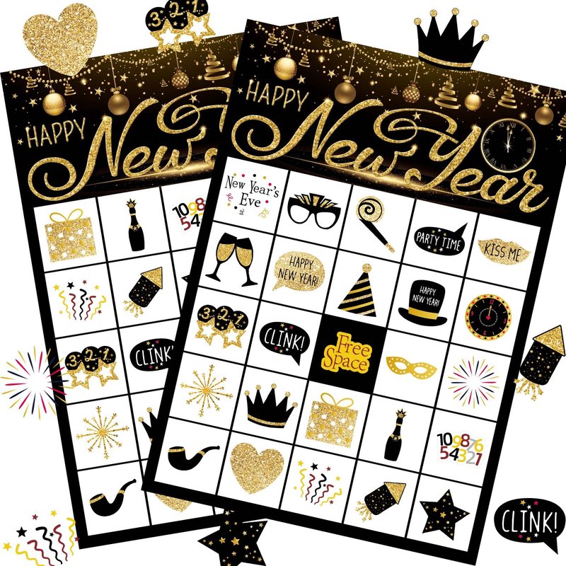 Funnlot New Year Eve Games 24 Players New Year Eve Bingo New Year Games for Kids New Year Bingo Game Cards for School New Years Eve Kids Activities New Years Party Supplies