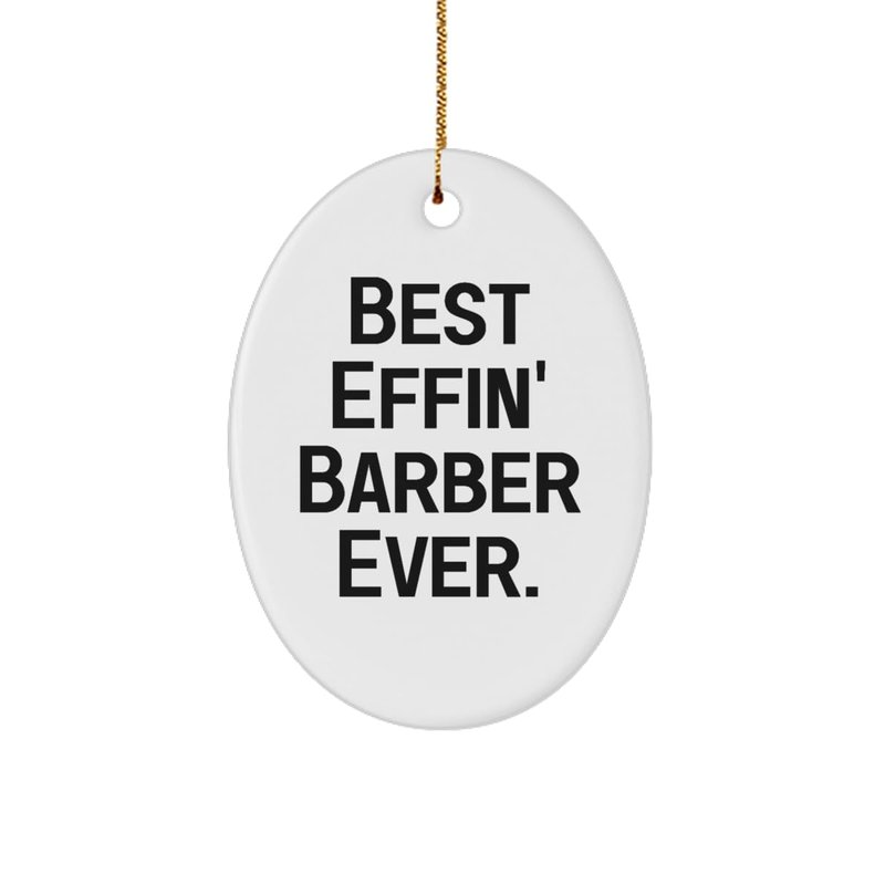 Funny Barber Gifts, Best Effin' Barber Ever, Fun Oval Ornament for Coworkers from Coworkers, Barber Scissors, Barber Clippers, Barber Combs, Barber Razors, Barber Supplies