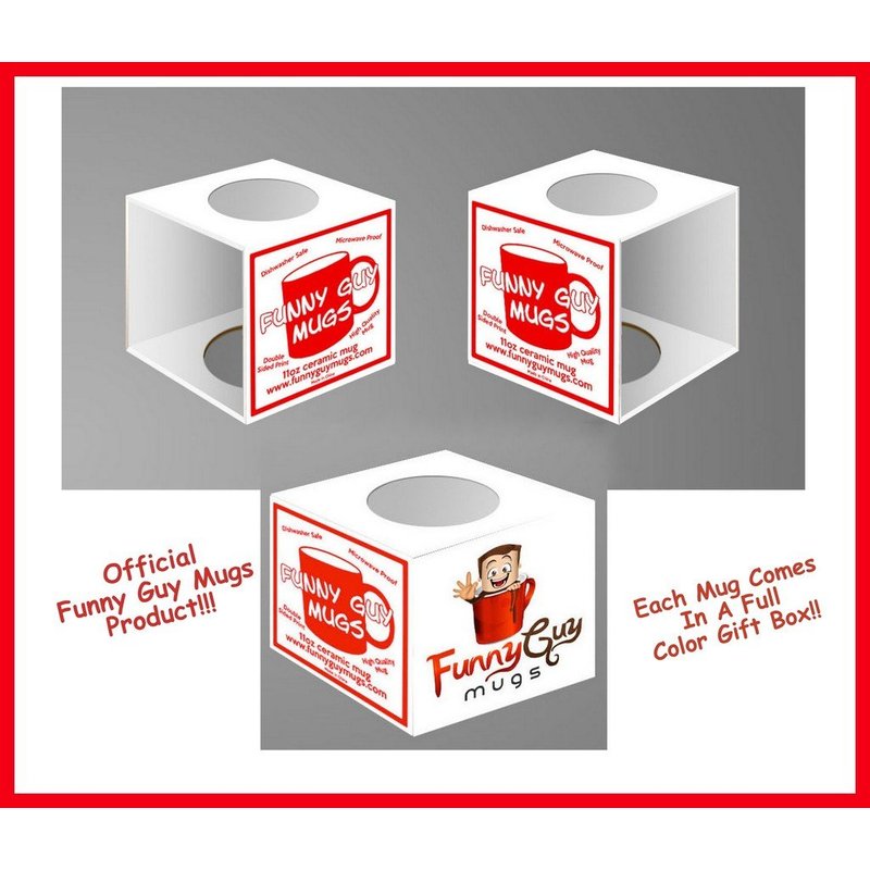 All of our mugs are dishwasher and microwave safe. Each design is printed on both sides of an 11 ounce ceramic mug. Our mugs are the perfect size to enjoy your favorite beverage. They feature a large, easy-grip handle and are individually boxed for added shipping protection. Funny Guy Mugs are the perfect gift! Order one today!!