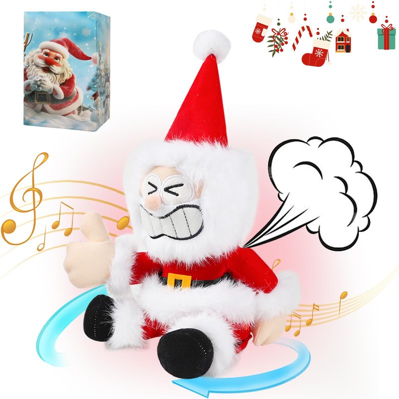 This 11.4-inch funny Santa Claus plush toy is not only adorable but also packed with fun, making it a must-have for a laughter-filled Christmas. Santa can talk, spin, vibrate, and even fart, bringing a festive atmosphere full of joy and laughter. Simply press the button on Santa’s butt, and he’ll start his hilarious performance, playing a farting Christmas song. This toy is suitable for family members of all ages, especially children, and will be the highlight of your holiday gatherings. Made from soft plush material, the toy feels comfortable to the touch and is finely detailed. Santa is dressed in classic red attire, complete with a traditional hat and belt, making him the perfect holiday figure. The toy’s switch is conveniently located on the bottom, making it easy for kids and family members to enjoy this festive fun. It also comes with an exquisite gift box, making it an ideal choice for gifting to friends and family. Whether at home, in the office, or as a holiday decoration, this funny tooting Santa Claus will bring unexpected surprises and laughter. Suitable for children aged 3 and up, this plush toy is undoubtedly a must-have for this Christmas season. Get ready to welcome this adorable and hilarious Santa, who will add endless fun to your holiday!