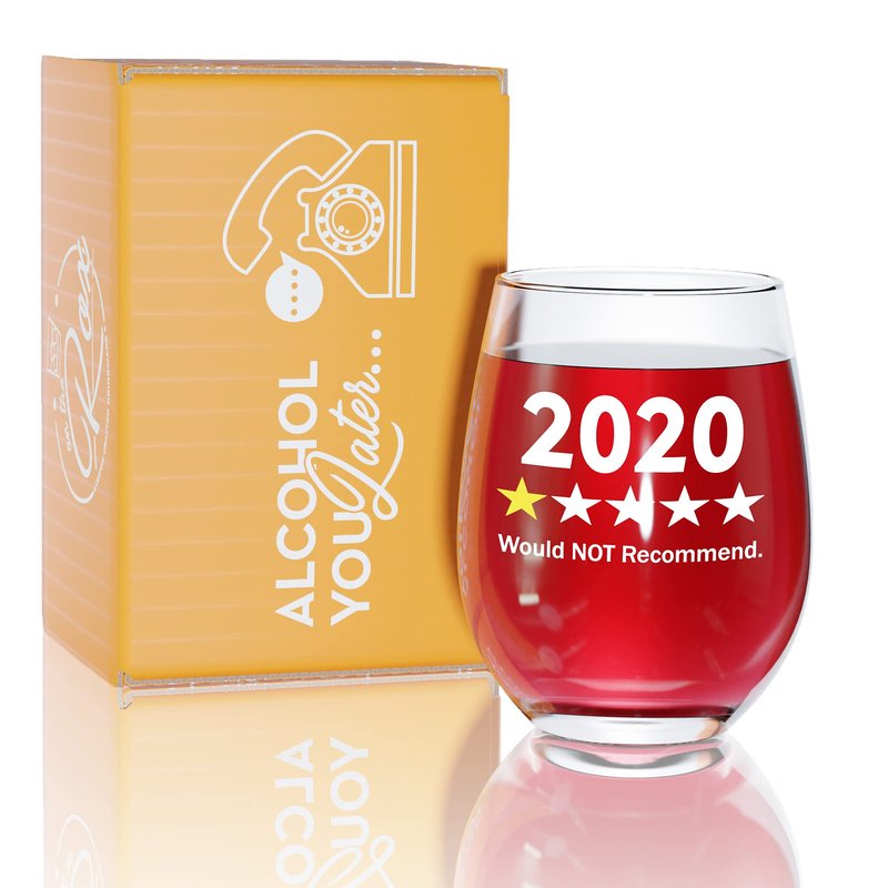 - 😊 SMILE IN EVERY SIP: See that genuine smile on everyone's faces when they drink wine from these stemless wine glasses printed with the humorous saying, "2020 One Star, Would NOT Recommend". Anyone, men and women, will fall in love with this funny and unique gift idea!