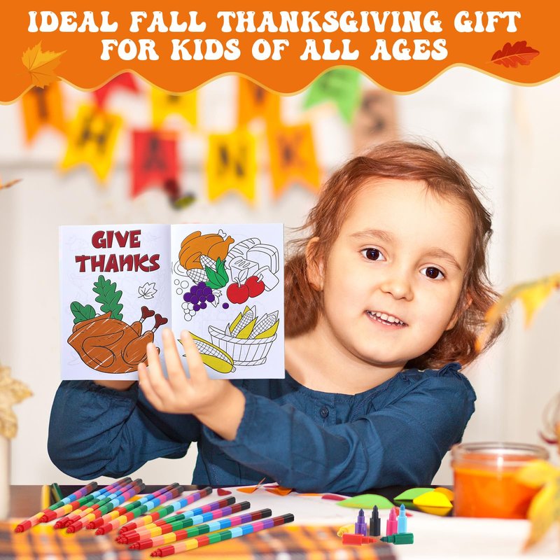 - Versatile and Practical Use: these Thanksgiving goodie bags stuffers make for prizes at Halloween contests in daycare, fall harvest treasure box fillers; People will stay productively occupied for hours, as they don't need to bring extra crayons, each set comes with its crayons making it practical