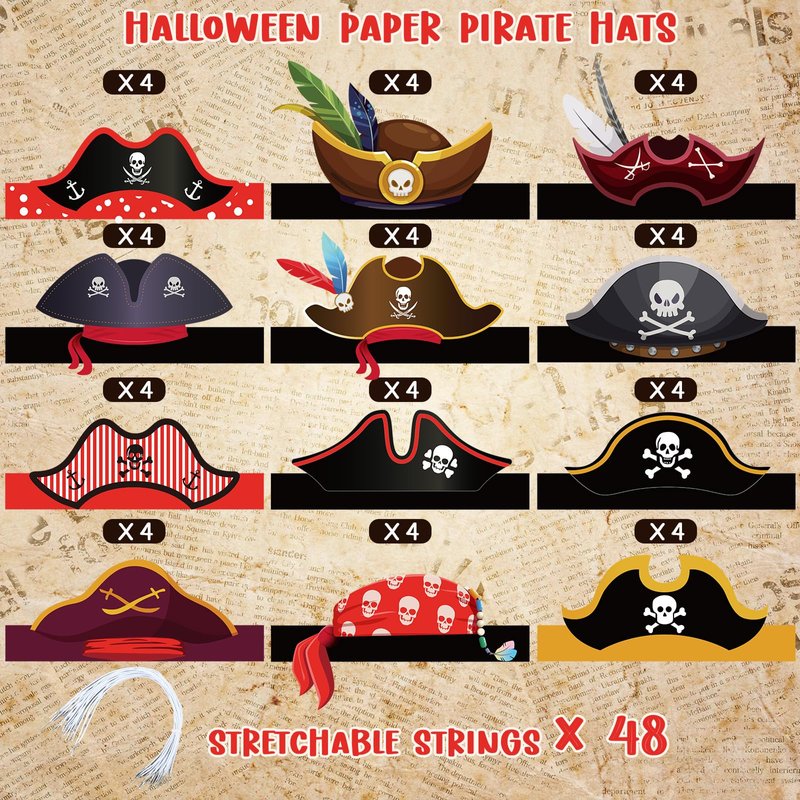- Quality You'll Love: made from quality paper, these kids' party pirate hats will stand up to all the fun; Looking for Halloween pirate costume accessories or pirate themed stage prop, these pirate party hats are exactly what you're after