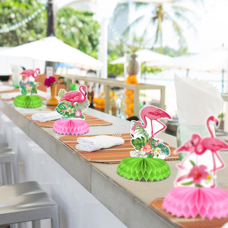 Funtery 9 Pcs Flamingo Centerpieces for Tables Hawaii Luau Honeycomb Centerpieces Flamingo Party Decorations Tropical Aloha Party Table Topper for Kid Flamingo Birthday Party Supplies Table Decoration