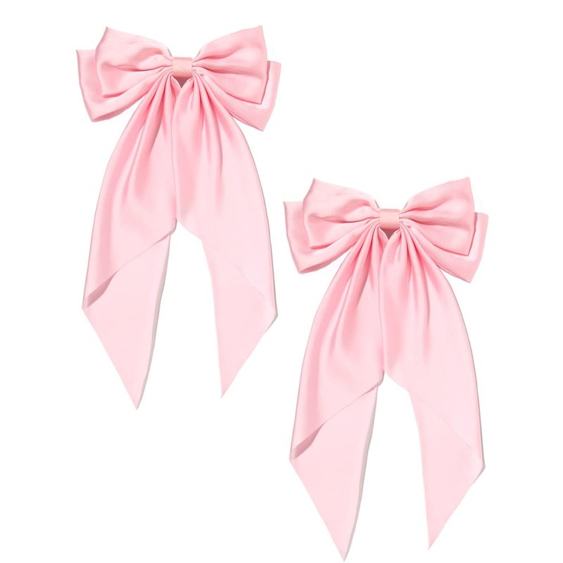 - Handmade long hair bow clips:Made with durable metal french barrette clips attached to back of the bow;satin solid color fabric,long tail with two-layer large bows