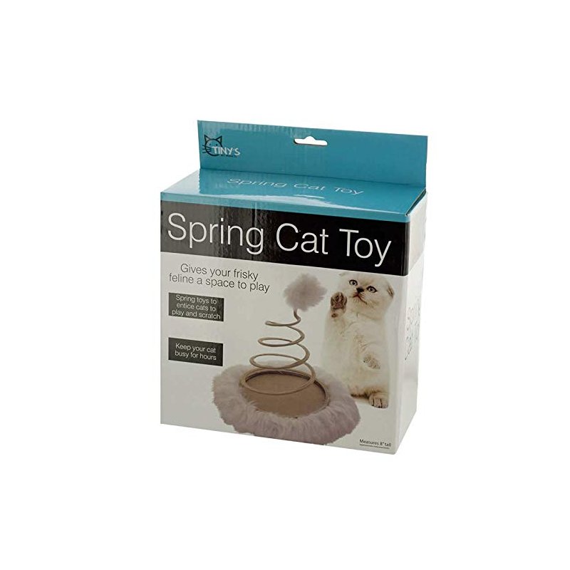 Give your frisky feline a space to play with this Furry Spring Cat Toy featuring a furry pompom on an expanding spring with a round, fur rimmed base. Spring toys entice cats to play and exercise for hours and just might help save your furniture, too. Measures approximately 8 inches tall with a 8.5 inch diameter base.