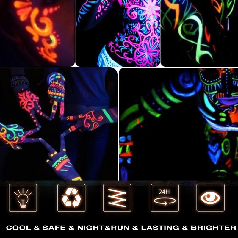 • 💘【Applicable Occasions】Neon face paint is very suitable for carnival, fancy dress, children's party, Halloween, school dance, drama, etc. It absorbs the light source under the action of external light, and the effect of ultraviolet light is better, and it emits a bright and vivid light in the dark.