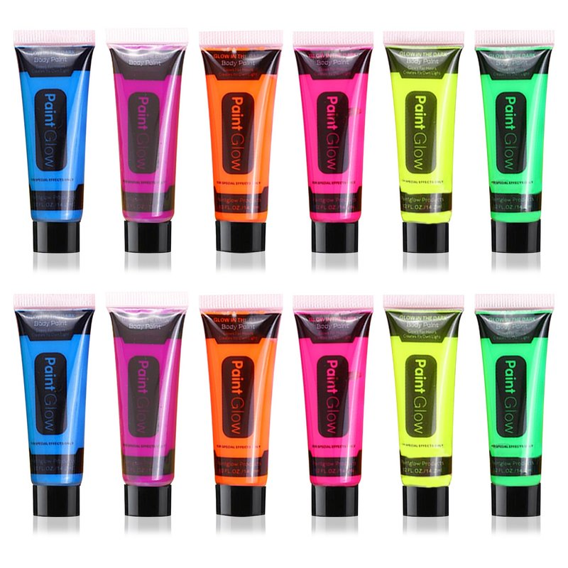 Fusang Glow in the Dark Face Body Paint,Washable Neon Face Body Paint,Black Light Face Makeup for Party Halloween Christmas Cosplay Masquerade Etc 0.48oz Set of 12 Tubes(12 colors)
