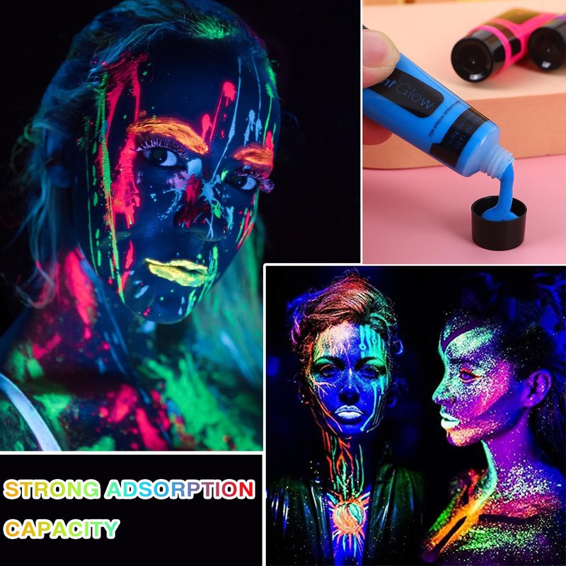 🛠This popular and popular face body paint set has 6 bright, vivid and attractive colors, which can be used day or night, absorb the light source (UV works best) under the action of outside light, and then glow in the dark Shiny, easy to apply and remove without worrying about color residue, creating a bright, vibrant look with ease.