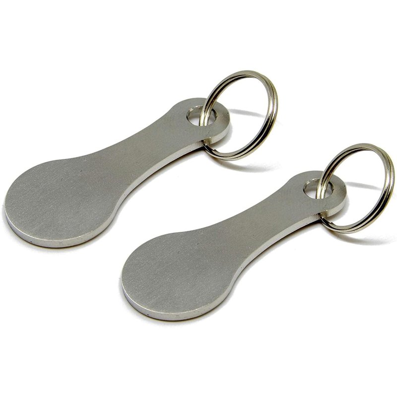 Fusiontec Mini Aluminum Alloy Key Ring Shopping Trolley Tokens - Small Aldi Quarter Holder Keychain for Grocery Shopping Cart, 2 Pcs Silvery