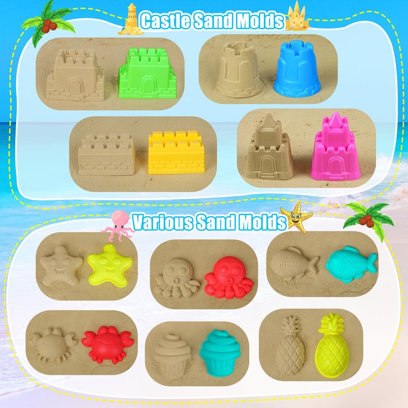 - Sand Castle Toys & Sand Remover Mitt: Kids can use their imagination to create the castle kingdom and various sand sculptures! Using these sand castle kits, kids will be Improving their creative and hands-on skills and impressing the entire beach with the castles they make. Includes a sand removal mitt to keep your hands clean and sand-free. Made with soft fabric, it effectively removes sand and ensures an easy cleanup after your beach adventures. Enjoy a hassle-free beach experience