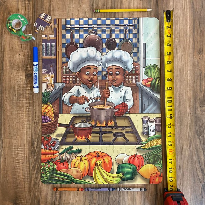 Future Chefs Kids Puzzle, Puzzle Huddle, 14in x 19.5in, 100 Piece Puzzle, Multicultural Puzzle for Kids, Ages 6+, Ages 6-8, African American Kids Puzzle, Black Kids Puzzle, Multicultural Toys