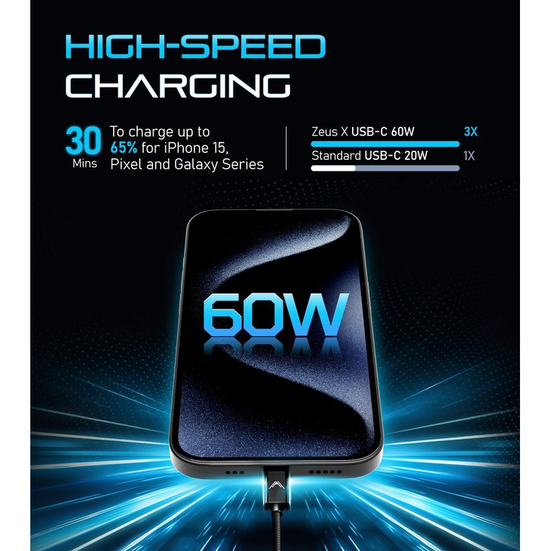 - [60W Power Delivery] - Support up to 20V/3A output to fast charge most USB-C devices including Macbook, Samsung, Oneplus. Google Pixel, iPad and more.
