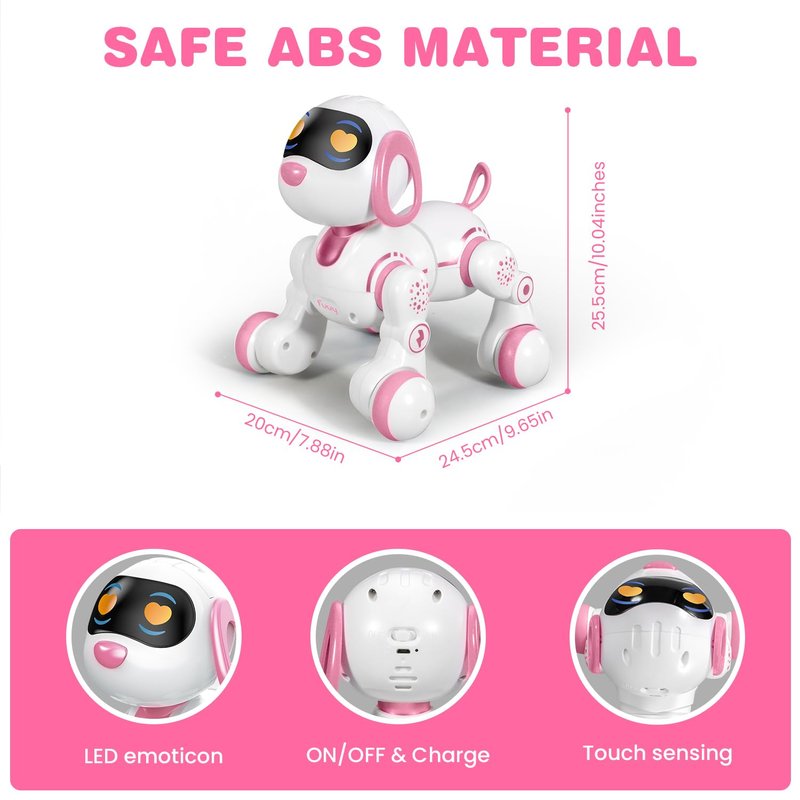 - đ€ăProgrammable Robot ToyăThe robot dog features easy programmable functions that allow kids age 3 years and above to customize this robot dog's actions and behaviors. You can imports a series of actions that the robot toy performs by the remote controller, then the intelligent robot dog will record and execute the commands. It's both a fun and educational robot toy for kids that promotes creativity, and problem-solving skills.