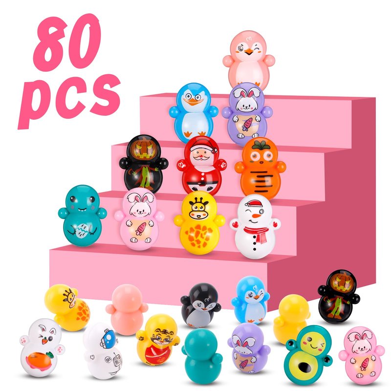 Fuyamp Mini Tumbler Toys 80 PCS Mini Animal Toy Party Favors Toy for Kids Birthday Party Toys Self-righting Doll Bulk Toys for Boys and Girls