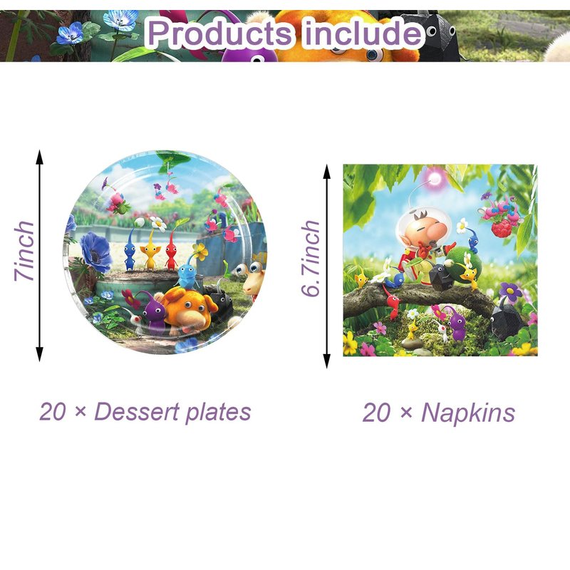 - Set includes: Pikmin plate 20pcs + 20pcs napkins ideal for Pikmin theme parties