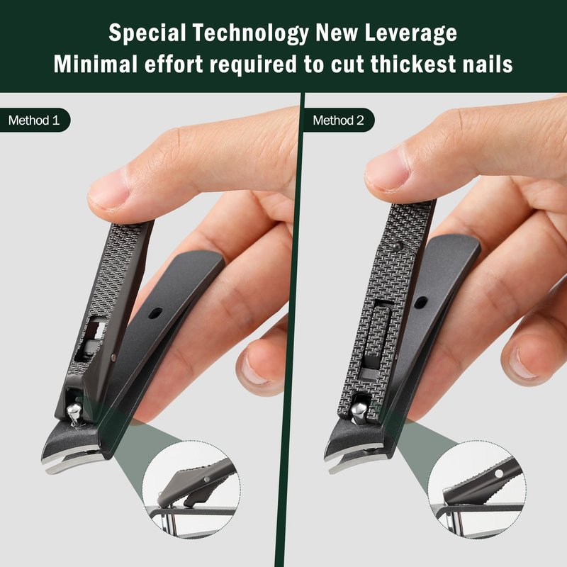 With our double-sided anti-slip texture handle, enjoy a comfortable grip every time. Plus, our short movable lever in the middle of the handle allows for easy use without having to flip the handle like traditional nail clippers.