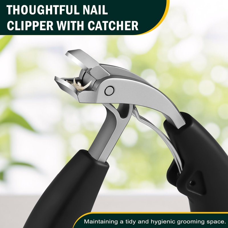 - Mess-Free Clipping with Nail Catcher - Tired of nail clippings flying everywhere? FVION toenail clippers are built with a convenient nail catcher, ensuring no more flying nail clippings and easy disposal. This toenail cutter designed as a large toenail clipper for thick nails delivers a pain-free experience and gives full control.