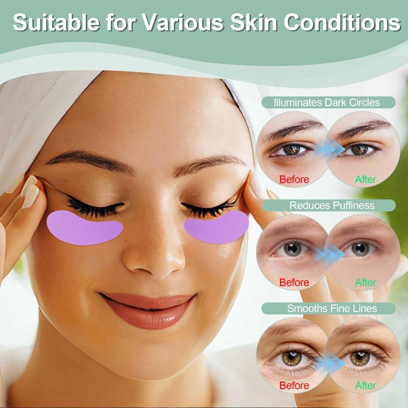 - Boost Skincare Absorption:Maximize the effectiveness of your favorite eye creams and serums, simply apply your product and place the patches on your under-eye area; The silicone material helps lock in moisture and enhances the absorption of active ingredients, promoting smoother, brighter skin