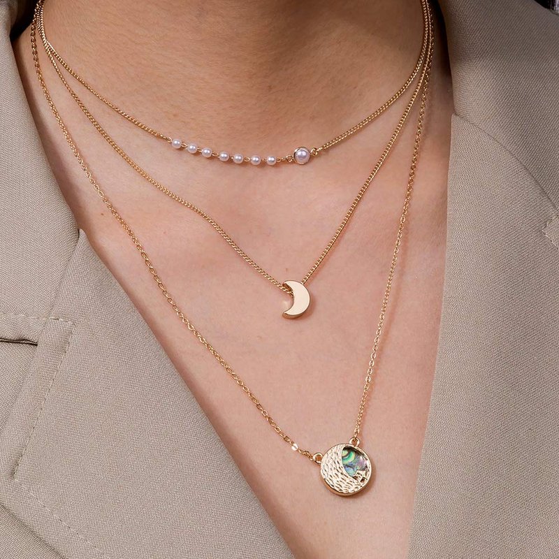 fxmimior Boho Layered Gold Choker Necklaces Bead Chain Necklace with Moon Pearls Pendant for Women and Girls