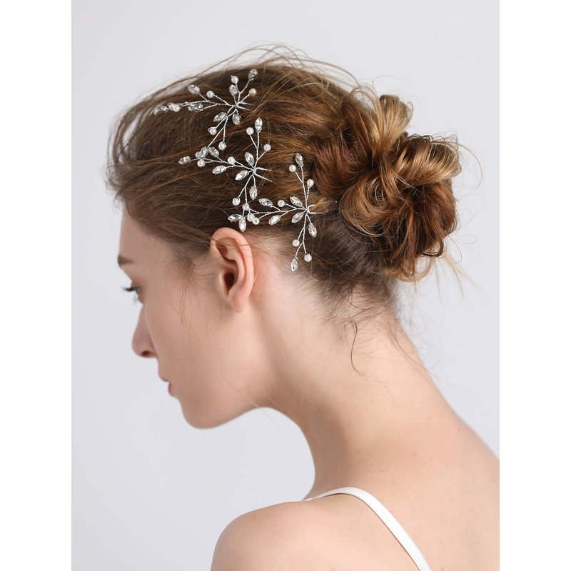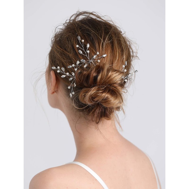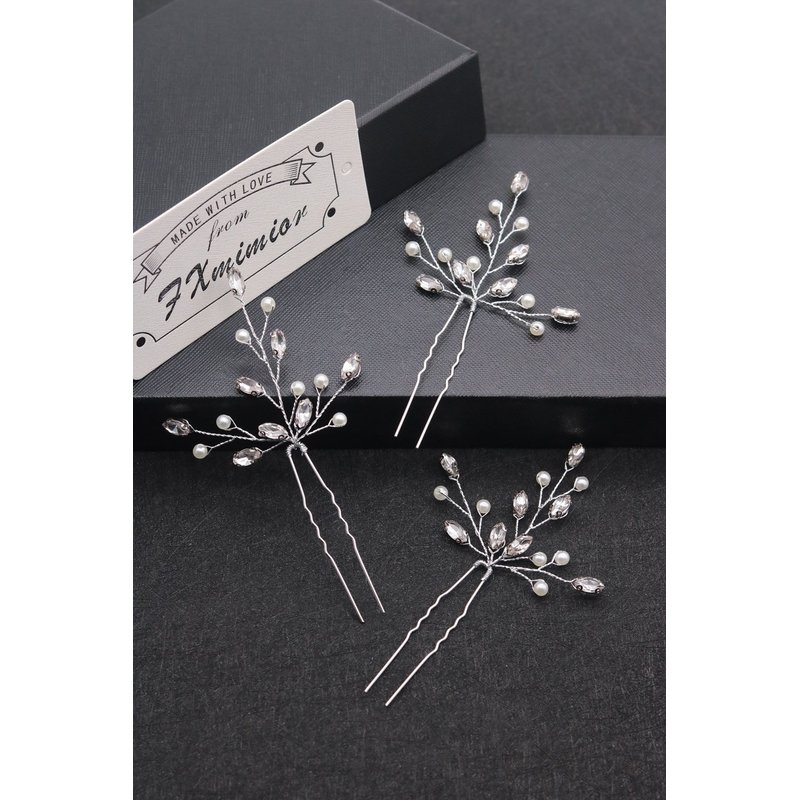 fxmimior Bridal Hair Accessories Pearl Crystal Hair Pins Hair Clips Bobby Pin Wedding Party Evening Headpiece Head Wear (pack of 3) (silver)