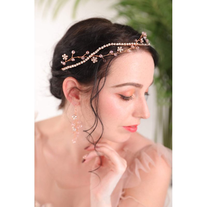 fxmimior Bridal Rose Gold Headpiece Bridal Rhinestone Hair Vine Pink Crystal Hair Accessories Flower Hair Jewelry for Women And Girls Rose Gold Wedding Tiara And Crowns(Headband)