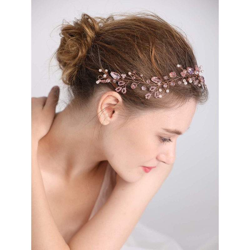 fxmimior Women Prom Black Hair Jewelry Bridal Headpiece Hair Vine Crystals Leaf Headband Tiara Party Evening Wedding Hair Accessory (Rose gold)